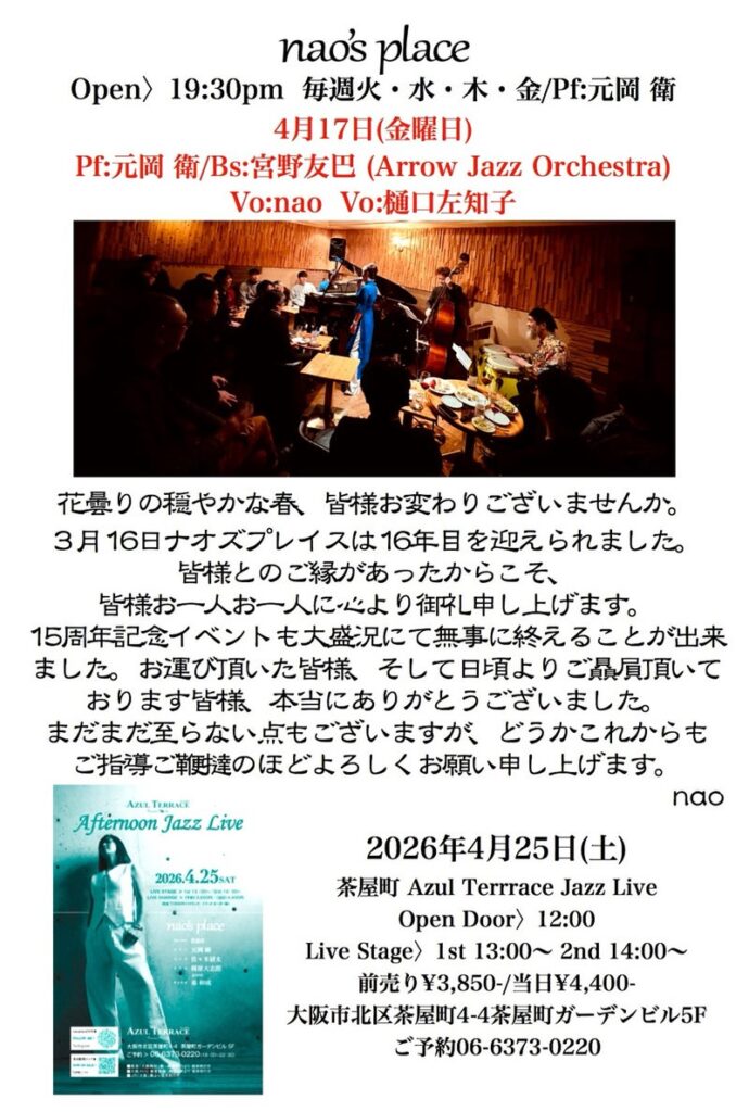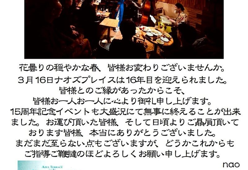 これからもnao’s placeを宜しくお願い致します。